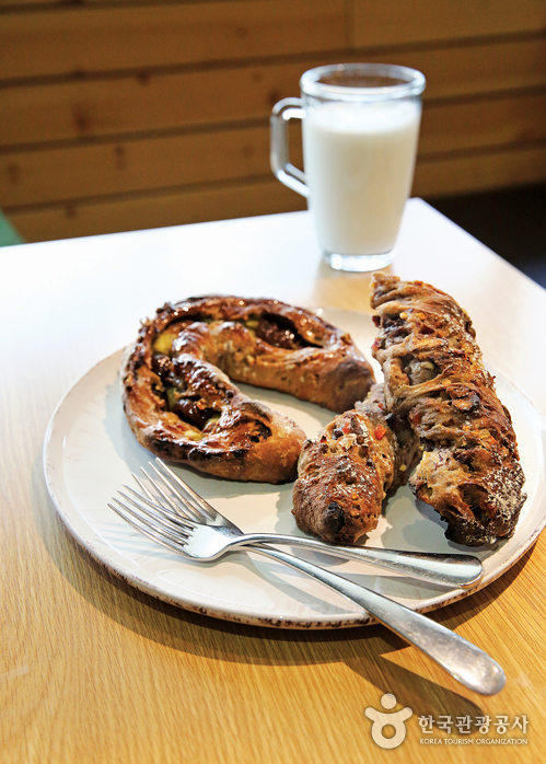 1978년부터 40년간 수많은 빵순이, 빵돌이의 마음을 사로잡은 곳. 연희동 골목에서 줄곧 한자리를 지켜온 만큼 동네 주민에겐 영원한 단골 빵집으로 통한다. ‘피터팬’이란 상호는 이 집의 빵을 사 먹은 손님들이 세월이 흘러도 피터팬처럼 늙지 말았으면 하는 마음에서 붙였다고. 시그니처 메뉴는 ‘장발장이 훔친 빵(5500원)’과 ‘아기 궁뎅이(1800원)’다. ‘장발장이 훔친 빵’은 천연 발효종으로 만든 빵에 건포도, 체리, 오렌지, 크랜베리 등 10여 종의 건과일과 견과류를 듬뿍 넣어 맛이 다채롭다. ‘아기 궁뎅이’는 안에 크림치즈가 가득 들어 있어 달콤 상큼하면서도 고소하다.