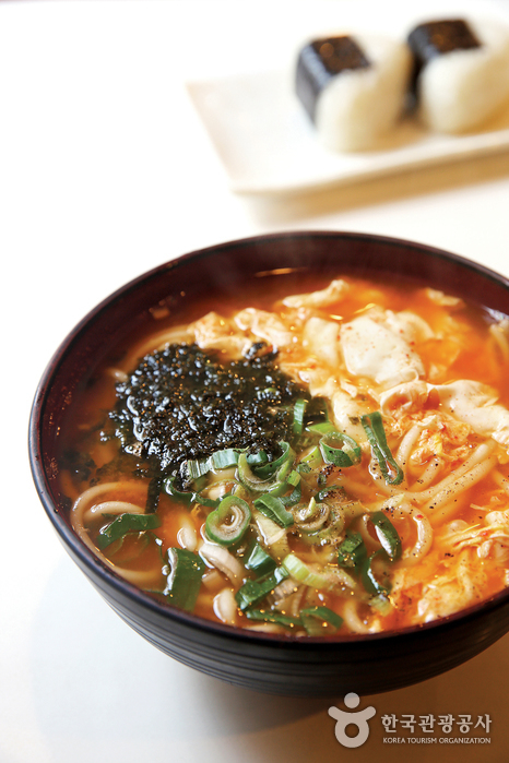 1975년 개업해 40년 넘게 이화여자대학교 학생들의 입맛을 책임지고 있다. 대표 메뉴는 가미우동(5500원)이다. 고춧가루와 달걀을 넣은 얼큰한 국물에, 밀가루에 소금만 넣어 뽑은 면을 듬뿍 넣어준다. 단짝처럼 함께 주문하게 되는 주먹밥(1인분 2개 3800원)은 겨자 간장소스를 찍어 톡 쏘는 맛으로 즐기면 된다. 삼각형 모양으로 예쁘게 빚은 찹쌀밥 안에 다진 소고기가 들어 있다. 일 년 내내 먹을 수 있는 수박빙수(5000원)는 이대 출신 엄마들이 입덧 때 찾는다는 얘기도 있다.