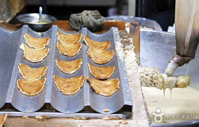 지하철 경복궁역 1번 출구로 나와 몇 걸음 걸으면 고소한 냄새가 확 풍긴다. 2대에 걸쳐 50년 넘게 전병을 구워내는 ‘내자땅콩’이 주인공이다. 지금 주인장 김영남 씨의 아버지 김종호 씨가 26살 때 시작한 가게로, 땅콩전병을 만들던 친척에게 기술을 배워 가게를 열었다. 연탄불에서 가스불로 바뀐 것 외에는 옛날 방식을 그대로 따른다. 대표 품목은 땅콩전병이다. 두 번 구워진 땅콩이 큼지막하게 박혀 있어 씹을수록 고소하다. 파래전병과 생강전병도 인기가 좋다.