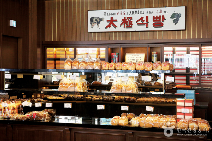 1946년 서울 명동에서 문을 열어 70년 넘는 세월을 보냈다. 지금의 장충동 본점은 1973년 지어졌다. 광복을 꿈꾸던 청년(창업주 신창근)이 민족의 이상을 담기 위해 무궁화를 로고로 만들고 이름을 ‘태극당’이라고 붙였다고 한다. 혼자 먹기 버거운 크기의 야채 사라다빵(5000원)과 아이스크림이 들어간 모나카(2500원) 등 지난 추억이 떠오르는 먹거리가 인기다. 천장에 걸려 있는 샹들리에와 진열장, 옛 글씨체를 살린 포장지 등에서도 오랜 역사가 고스란히 느껴진다.
