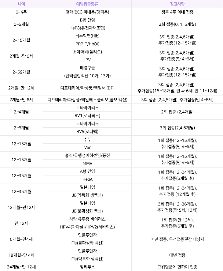 예방접종의 종류와 시기