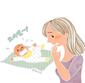 아기가 눕는걸 거부해요.